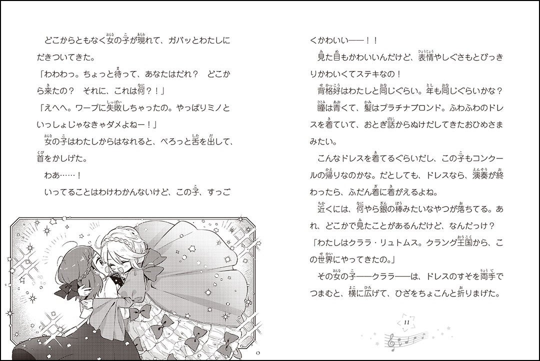 いろいろな世界を旅して、ピアノ演奏を通して人助けをする存在「ストピトラベラー」となった花美の成長はもちろん、クララとの友情、マスコットキャラクター・ミノの活躍、エキサイティングなピアノ演奏シーンなど、子どもだけでなく大人も楽しめる物語です。