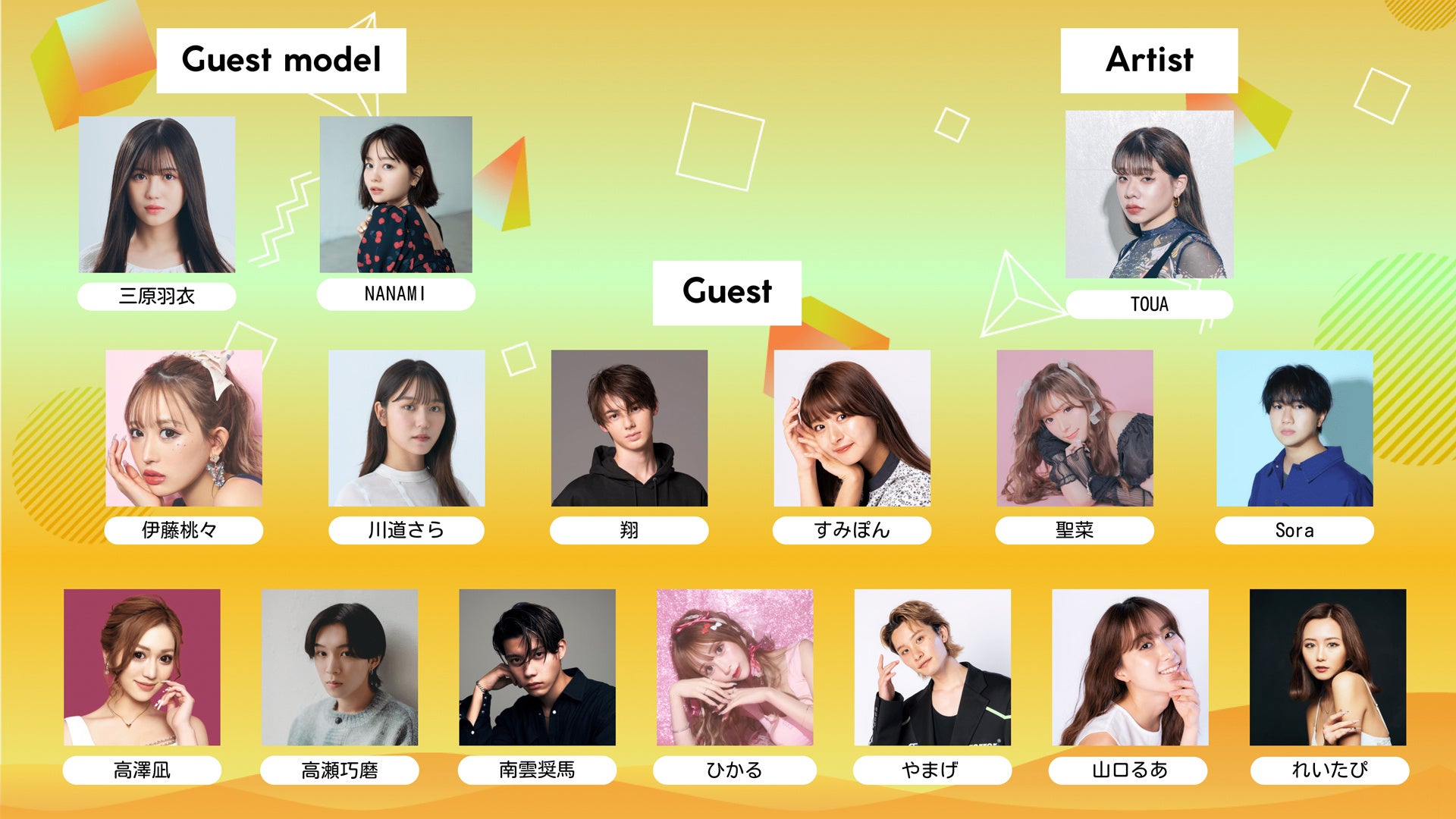 さらにゲストとして、同世代から絶大な人気を誇る現役女子高生YouTuberのMINAMI、ABEMAの青春恋愛リアリティーショー「今日、好きになりました。」に出演し話題を集めた川道さら、雑誌「小悪魔ageha」専属モデルの伊藤桃々、ひかる、聖菜、高澤凪、「nuts」専属モデルのれいたぴ、日本テレビ「超無敵クラス」に出演中の翔、人気TikTokクリエイターの南雲奨馬、YouTubeの枠を超えて俳優やアーティストとしても活躍するSora、Z世代に支持されCMなどでも活躍する高瀬巧磨などの出演が決定しました。