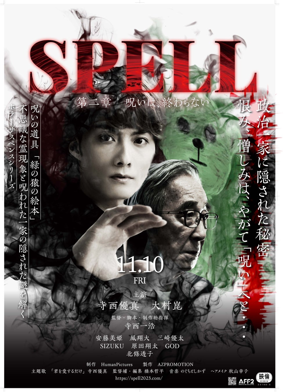 「SPELL~呪われたら、終わり~」は、東京・新文芸坐ほかMOVIX柏の葉、MOVIX三好、MOVIX堺、熊本ピカデリー(松竹マルチプレックスシアターズ)で第1章10月27日㈮から、第2章は11月10日からロードショー。