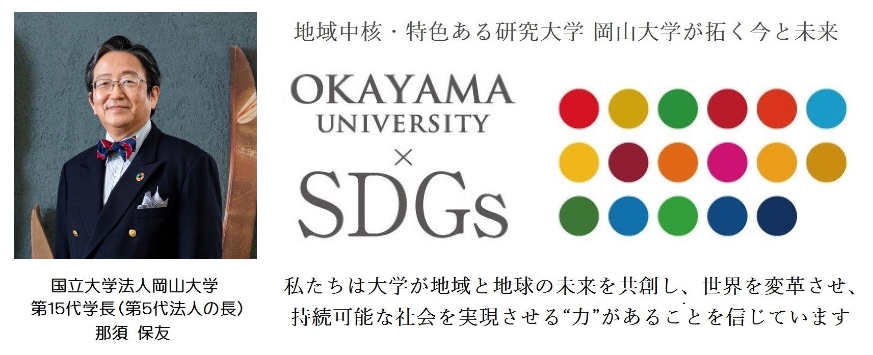 国立大学法人岡山大学は、国連の「持続可能な開発目標(SDGs)」を支援しています。また、政府の第1回「ジャパンSDGsアワード」特別賞を受賞しています。地域中核・特色ある研究大学:岡山大学にご期待ください