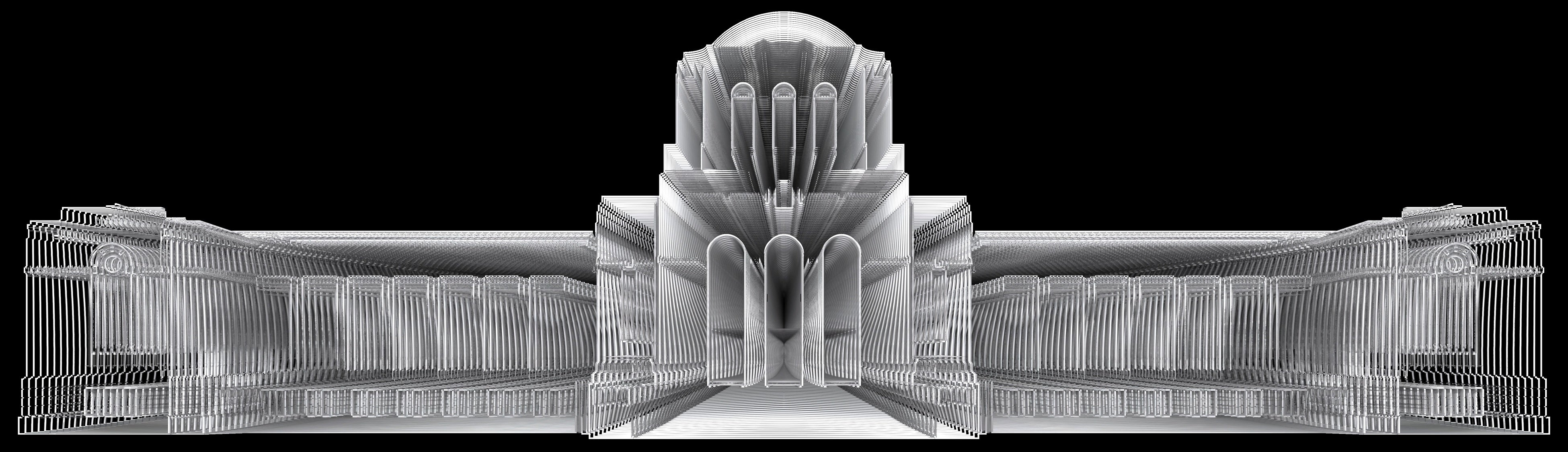 この「reshape」は、建物に映像を投影することでその外観を変える可能性を表すものです。プロジェクターの光を利用して、映像はバーチャルに形状を再形成することができ、プロジェクションで建物の見方、体験方法を変え、新しい解釈と文脈をもたらします。光が空間を変容させるように、映像によって建築を変容させる表現をします。そして、その体験を向上させるために、音声とアニメーションを同期させ、聴覚と視覚の両方の感覚を同時に刺激する作品です。