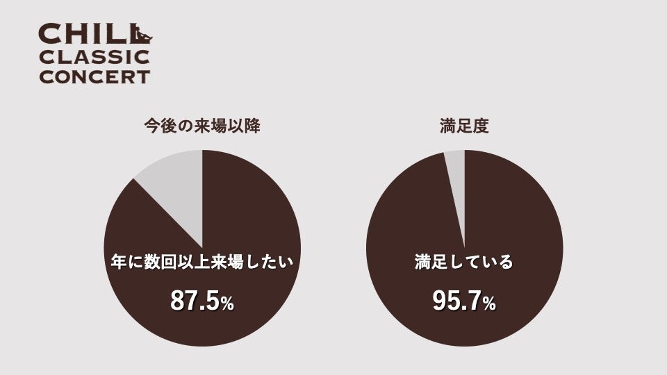 また、来場者のうち70%以上が「クラシックコンサートにいく機会はあまりなかったが、今後行ってみたい」と回答するなど、クラシックコンサートに関心をもつきっかけも引き続き生まれており、「聴き方」に着目することでオーケストラの魅力を広く伝えていくことを目指す『CHILL CLASSIC CONCERT』を象徴する数字となりました。