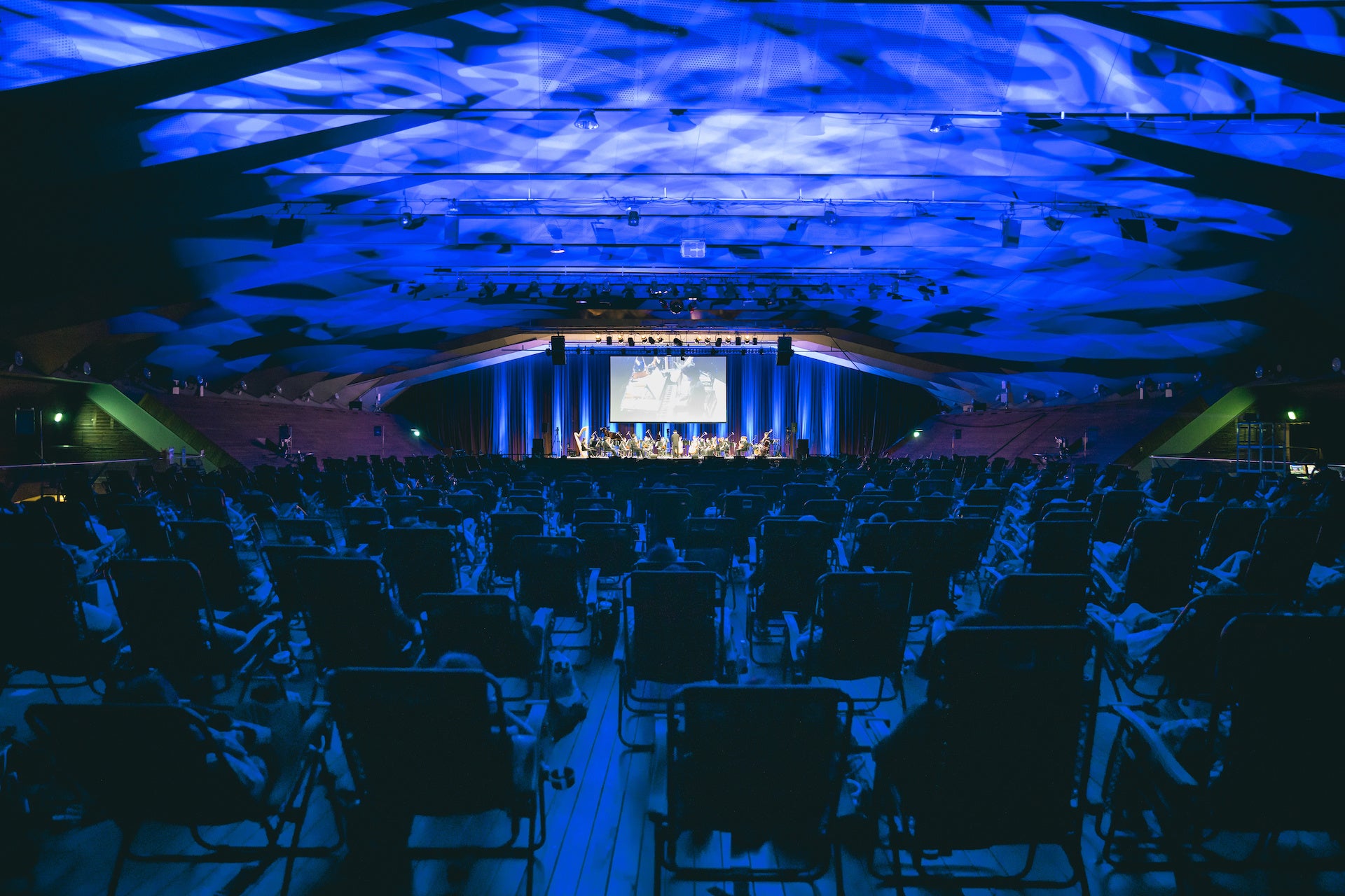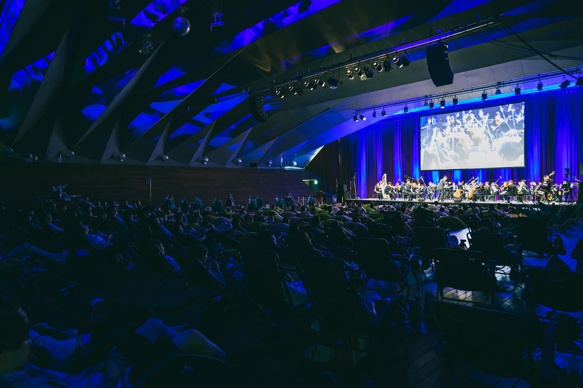 来場者の皆様には、海の中をテーマにした会場で、飲み物やお菓子を片手に寝そべりながら聴く、いままでにないオーケストラ・コンサート体験を楽しんでいただきました。