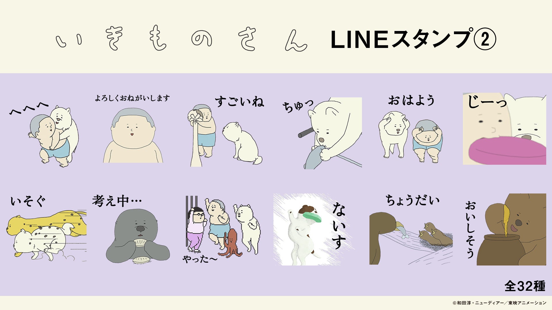 今回リリースされる「いきものさん」LINEスタンプ第2弾はいがぐり、犬を中心にいろんないきものが登場する全32種類のラインナップ。ふしぎでクセになる”いきものたち”の新感覚スタンプでトークを盛り上げましょう!ぜひお友達とご使用ください。