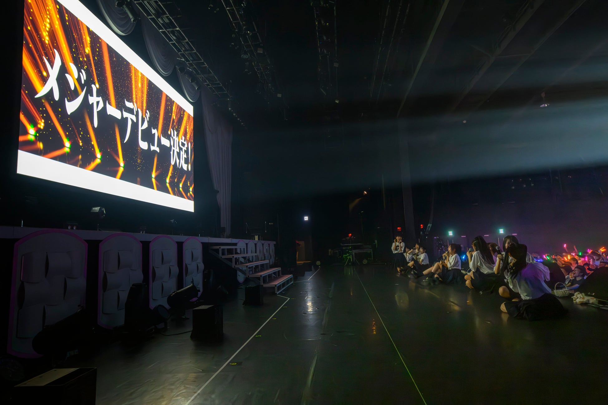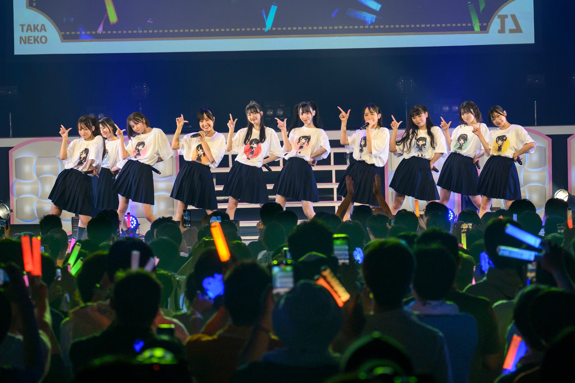 そしてライブ終盤の定番曲「ファンサ」ではメンバーが思い思いにカラーボールを客席に投げ込み、さらには巨大なバルーンボールも客席に登場。お祭り気分をメンバーとファンで一体になって楽しんだところで告知映像が始まり、この1周年記念ライブの追加大阪公演の開催(11月19日梅田TRADにて)、TEAM SHACHI・FRUITS ZIPPERを迎えての『たかねこフェス Vol.2 〜ウインターセッション2023〜』(12月8日新宿BLAZEにて)の開催とファンクラブ先行抽選の開始が決定。しかしこれだけでは終わらず、2023年冬のメジャーデビュー決定という嬉しいニュースがスクリーンに映し出された。メジャーデビューとファンの大歓声にステージ上のメンバーも驚きと喜びでいっぱいになりながらも嬉しさをかみしめていた。