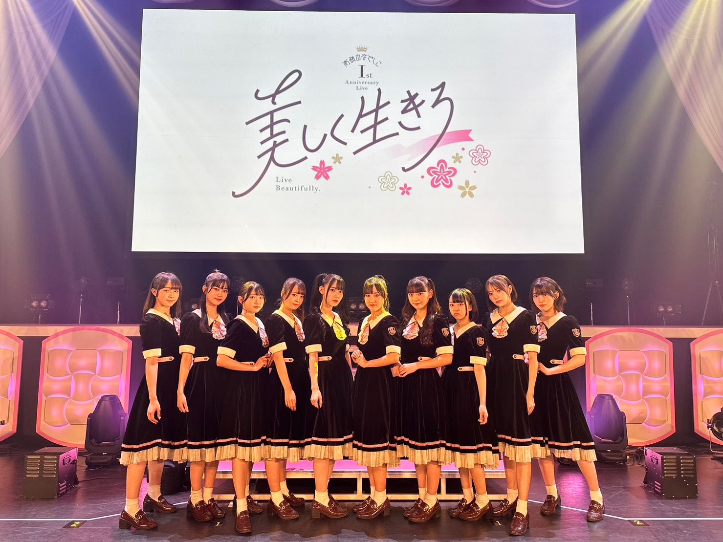 2022年8月の結成以来、「大和撫子」のように日本女性の清楚な美しさとかわいらしさを持った、誇り高きアイドルグループを目指して活動してきた10人。超満員の1500人の観客とともに迎えた1周年、全26曲のライブの模様をレポートする。