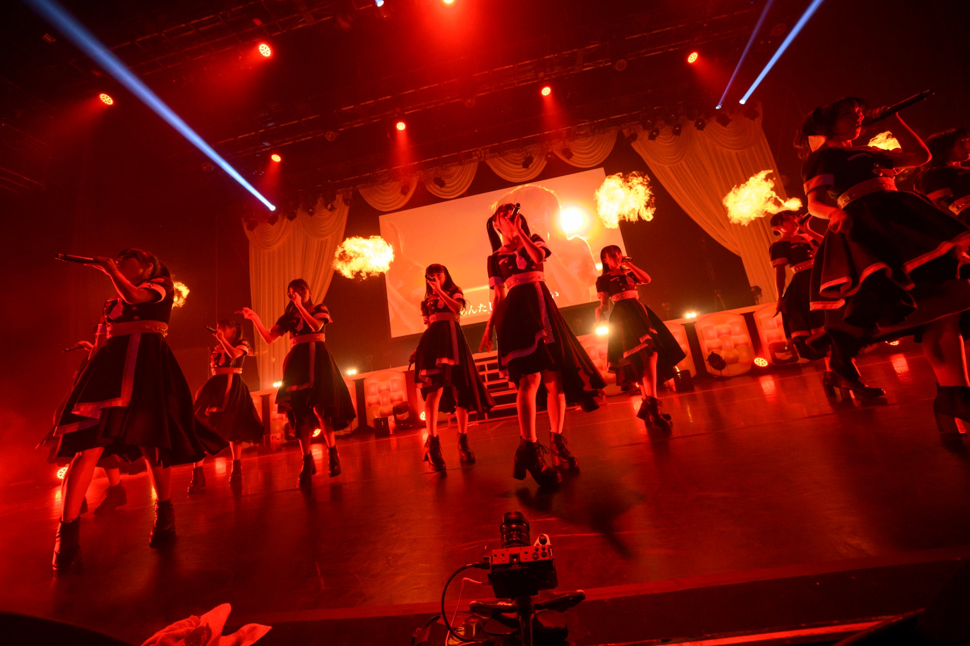 続いて正統派アイドルソングの「女の子は強い」「男の子の目的は何?」を披露すると、暗転してメンバーへのインタビュー映像が始まる。高嶺のなでしこに選ばれて人生が変わった10人それぞれの思いがファンに伝えられ、アイドルという仕事への思いをぶつけるように「僕は君になれない」のパフォーマンスがスタートし、「♯超絶かわいい」ではタオルを振って客席を煽る。ファンも「超絶かわいいたかねこ!」のコールで応えていく。