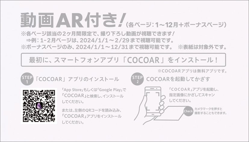 2024年のカレンダーは表紙以外の全7ページに「AR動画」が付いています。