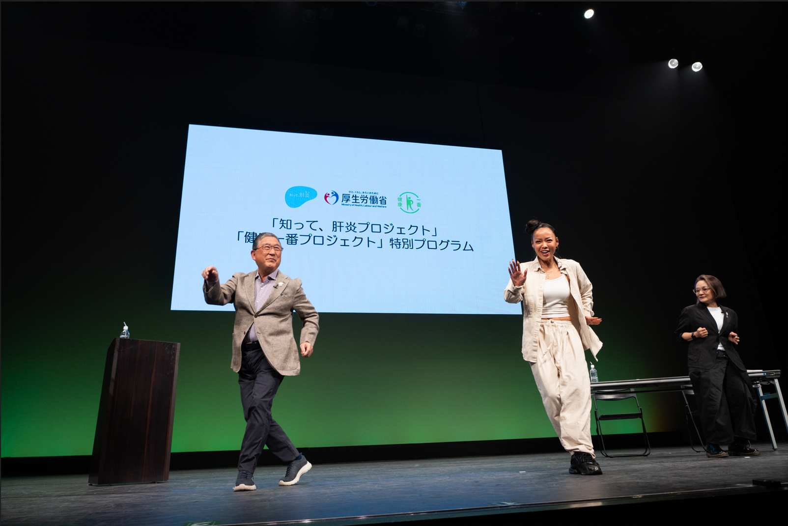 この度、9月2日(土)に「知って、肝炎プロジェクト」肝炎対策広報大使である徳光和夫氏の司会進行により、ダンスを通じた健康づくりについて発信をする特別プログラムが開催され、「健康一番プロジェクト」サポーターのMaasa氏、東京大学 先端科学技術研究センターの宮﨑敦子氏が出演しました。