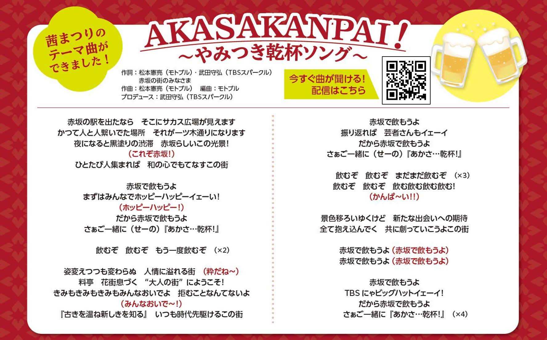 ・作詞:松本 憲亮(モトブル) / 武田 守弘(TBSスパークル) / 赤坂の街の皆様