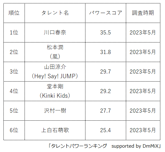 本ランキングは、2023年5月度に実施したタレント調査データ(一部過去実施データ)を利用し、タイトルに応じてランキング形式でまとめたものです。