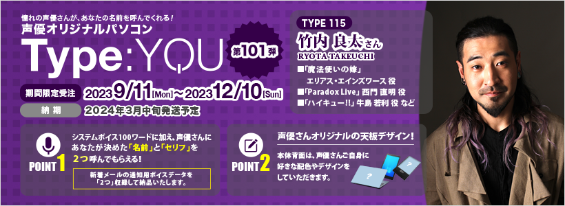 声優オリジナルパソコン【Type:YOU】第101弾 商品ラインナップについて