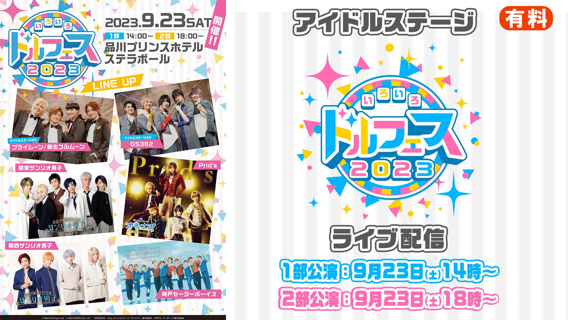 2023年9月23日(土)、ネルケプランニング発の「アイドルステージ」を中心としたライブ公演「ドルフェス」が「いろいろ ドルフェス2023」として8年ぶりに復活。1部・2部公演がニコニコ生放送にてライブ配信が決定いたしました。