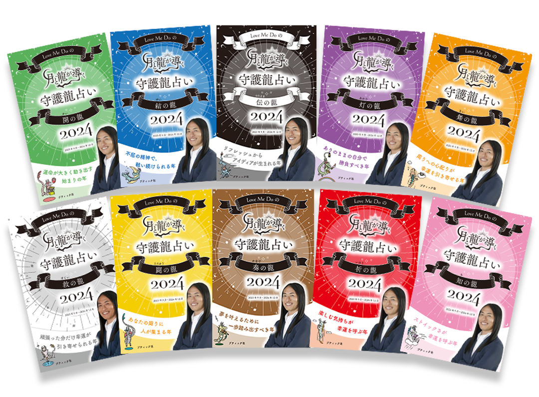 商品名:「Love Me Doの月と龍が導く守護龍占い 2024」(開の龍、結の龍、伝の龍、灯の龍、舞の龍、救の龍、闘の龍、奏の龍、祈の龍、知の龍の10種)
