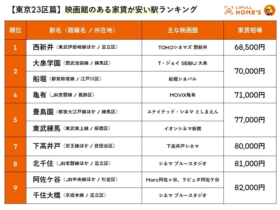 【東京23区】1位はTOHOシネマズのある「西新井」、ミニシアターのある駅もランクイン