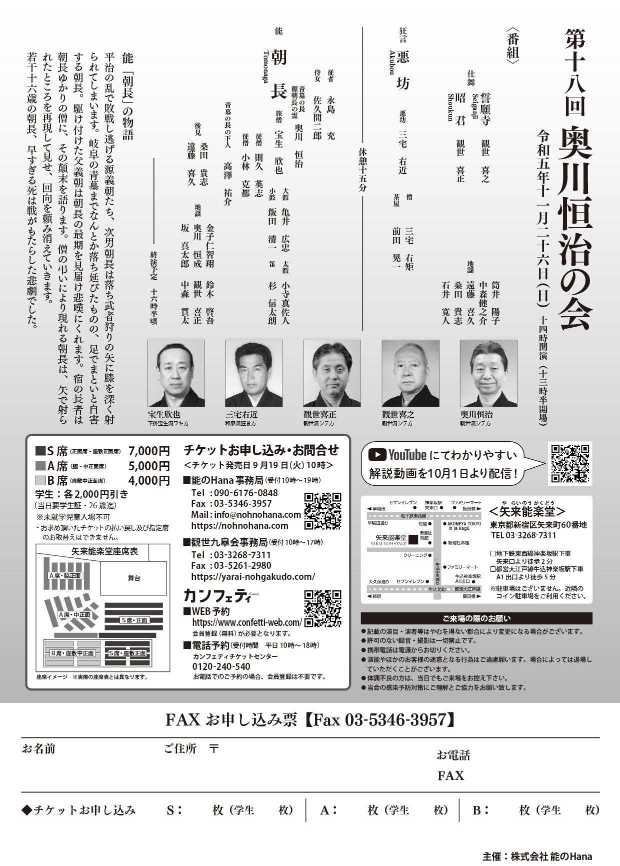 奥川恒治の会は観世流シテ方能楽師・奥川恒治主催の能楽公演です。