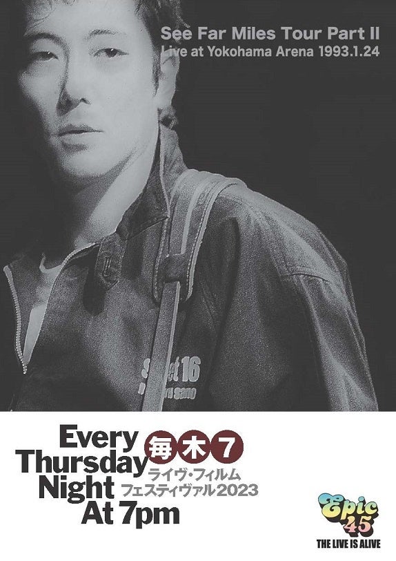 2023年、創立45周年の節目を迎えたEPICレーベル。ライヴに拘ったEPICレーベルからこれまで発表された80~90年代の珠玉のライヴ・フィルム7作品を全国19都市24カ所の映画館にて、9月21日(木)より毎週木曜よる7時から7週連続で一夜限定上映するイベント『EPICレコード創立45周年記念 毎木7ライヴ・フィルム・フェスティヴァル2023 -THE LIVE IS ALIVE!-』が開催される。