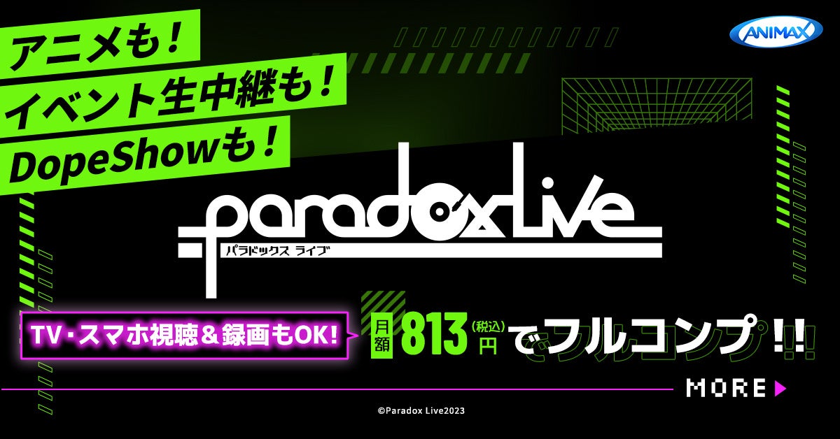 スカパー!でアニマックス(BS236ch)に加入すると813円(税込)/月*でParadox Liveのイベントやアニメ、過去ライブ、特別番組が放送・配信で全てお楽しみいただけます!*別途、スカパー!の月額基本料429円(税込)がかかります。