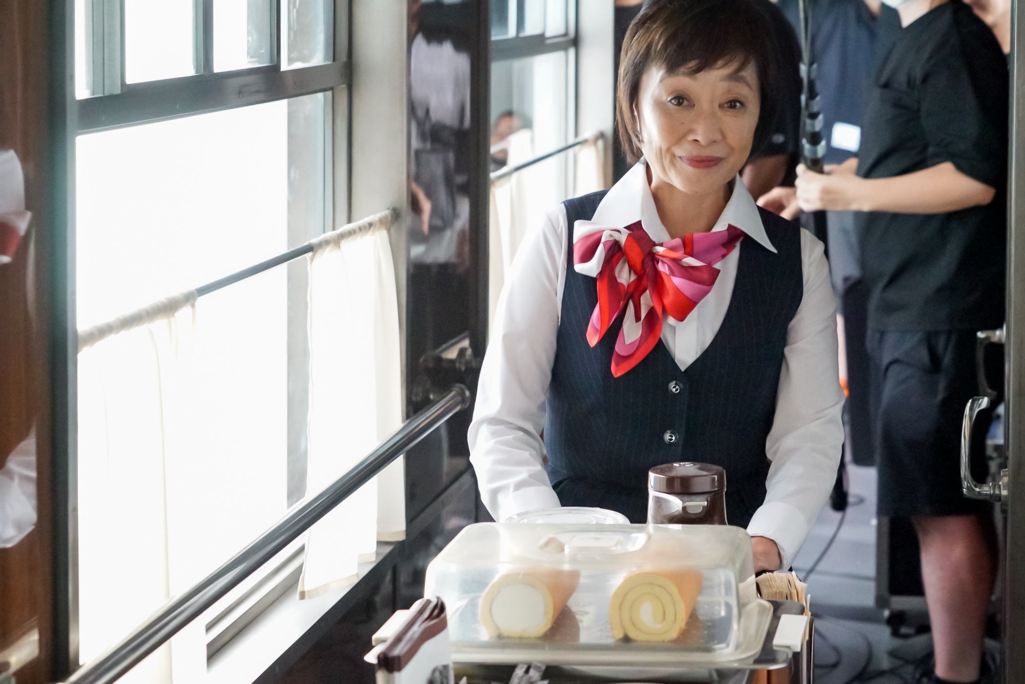 客室乗務員を演じる増田さんは撮影前から声のトーンや細かな動きについて確認するなど、積極的な姿勢で周囲を驚かせました。さらに監督との打ち合わせでは「『お弁当にお茶、コーヒーをお持ちしました』のセリフに『デザート』を入れた方がいいと思うんです」と力説し、監督が「そうしましょう!」と即断するひと幕も。本番に臨んだ増田さんは笑顔でカートを押しながら「デザートをお持ちしました」と車内に美声を響かせました。