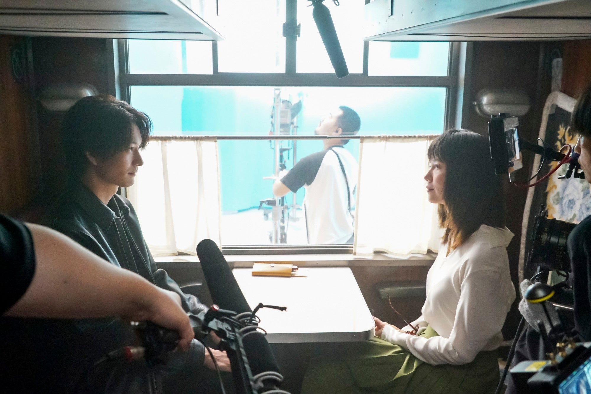 美術セットとは思えないリアルな列車に宮﨑さん、岡田さんも感激