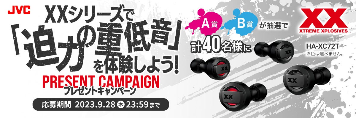 株式会社JVCケンウッドは、公式オンラインストア「JVCケンウッドストア」にて、“XXシリーズで「迫力の重低音」を体験しよう!” プレゼントキャンペーンを実施します。