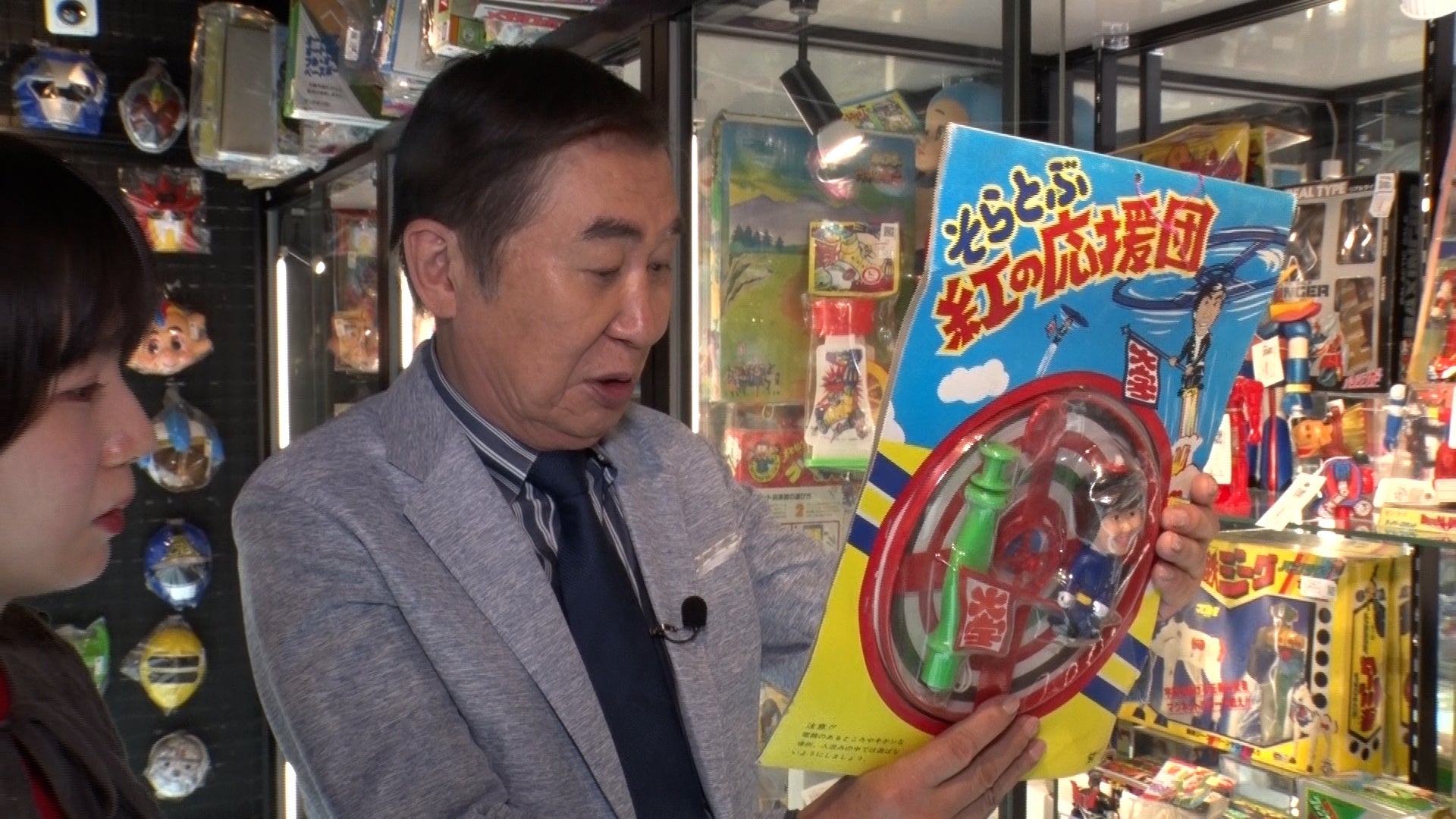 懐かしいおもちゃやレアなフィギュアが揃う店内を2人が散策をしていくと、光永が大きな声で文枝を呼びます。光永が見つけたのは、「そらとぶ紅の応援団」というなんと若き日の文枝がモデルとなったおもちゃ。文枝はそのおもちゃを手に取ると、「初めて見ました」と驚きながら、「さっきのゴジラ(のフィギュア)と比べたら安いな…」と悔しそうな表情を浮かべて、笑わせていました。