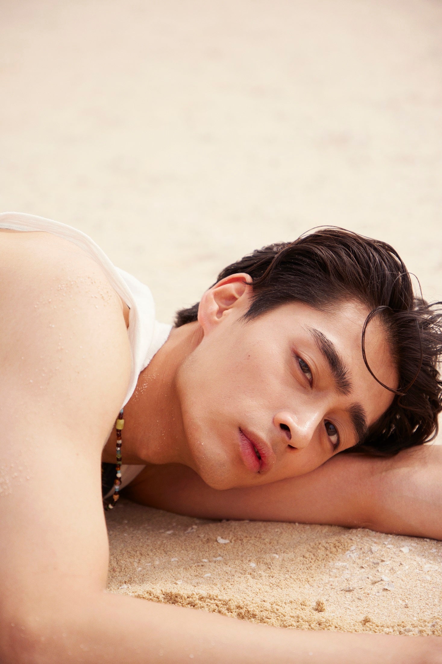 海辺でのカットのほか、クリーンな白いシーツに光がさし、キラキラと輝くベッドルームで、寝ぼけ眼でぼーっと少年のように佇む姿や、パジャマからアンダーウェア、そこから洋服へ着替える流れなどプライベートな一瞬を切り取った写真も乞うご期待。隣で寝ているかのような、親密なカットはどれも永久保存版の価値あり!