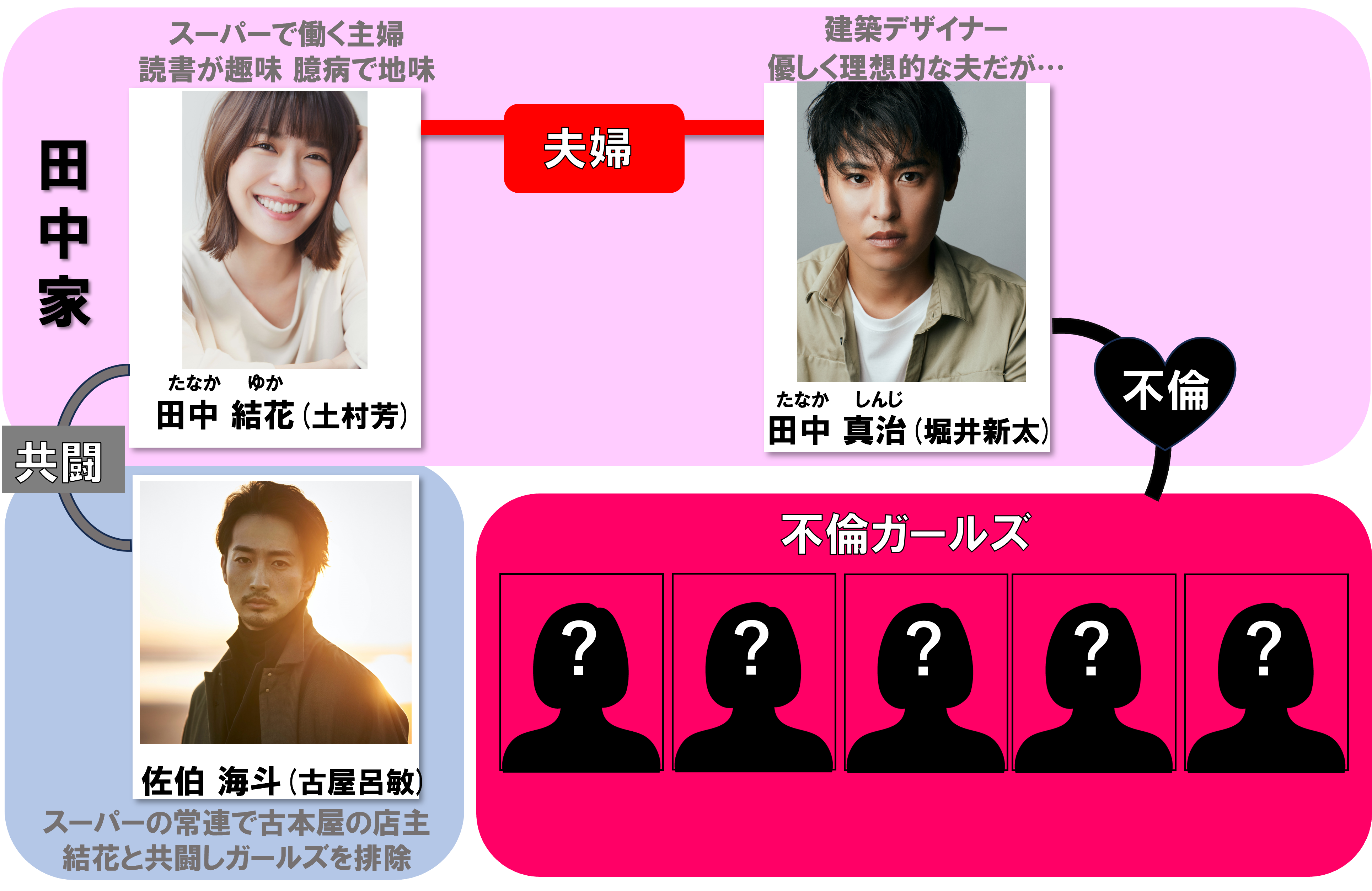 話が食い違う二人に疑念を抱いた結花は、その夜、夫の携帯を見てしまう。するとそこには5人の女性との不倫のやり取りが――。愕然とする結花は、海斗(古屋呂敏)と共闘し夫の不倫相手を特定し排除していく。
