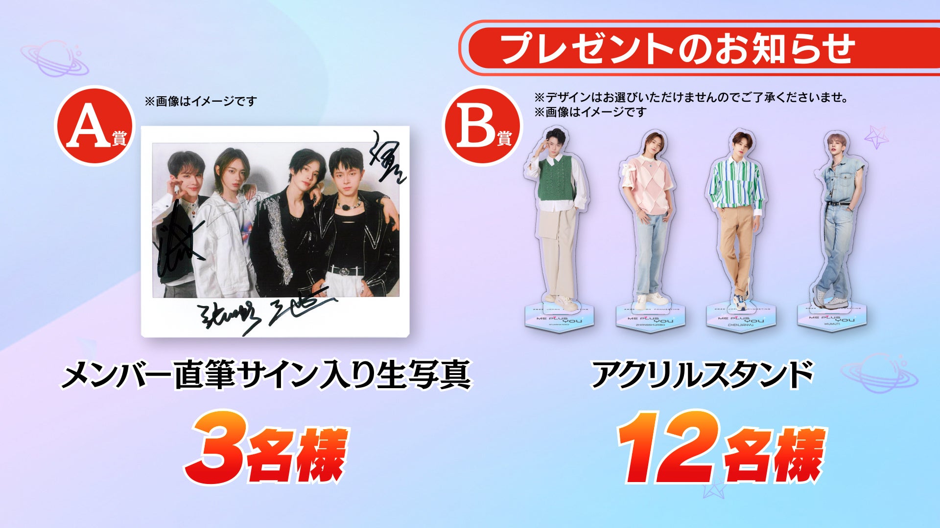 放送を見て応募!抽選で計15名様に『メンバー直筆サイン入り生写真』or『アクリルスタンド』が当たる!