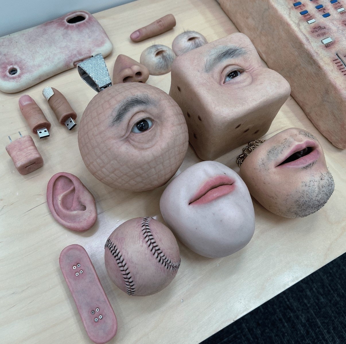 人肉iPhoneケース、人肉iPhone充電器、人肉USB(親指)、人肉栓抜き(耳)、人肉フィンガーボード、人肉ミラーボール(右目)、人肉野球ボール、人肉ショットグラス(鼻)、人肉印鑑(薬指)、人肉小銭入れ(口)、人肉レコードアダプター(へそ)、人肉サイコロ(左目)、人肉MPC2000XL (L→R)