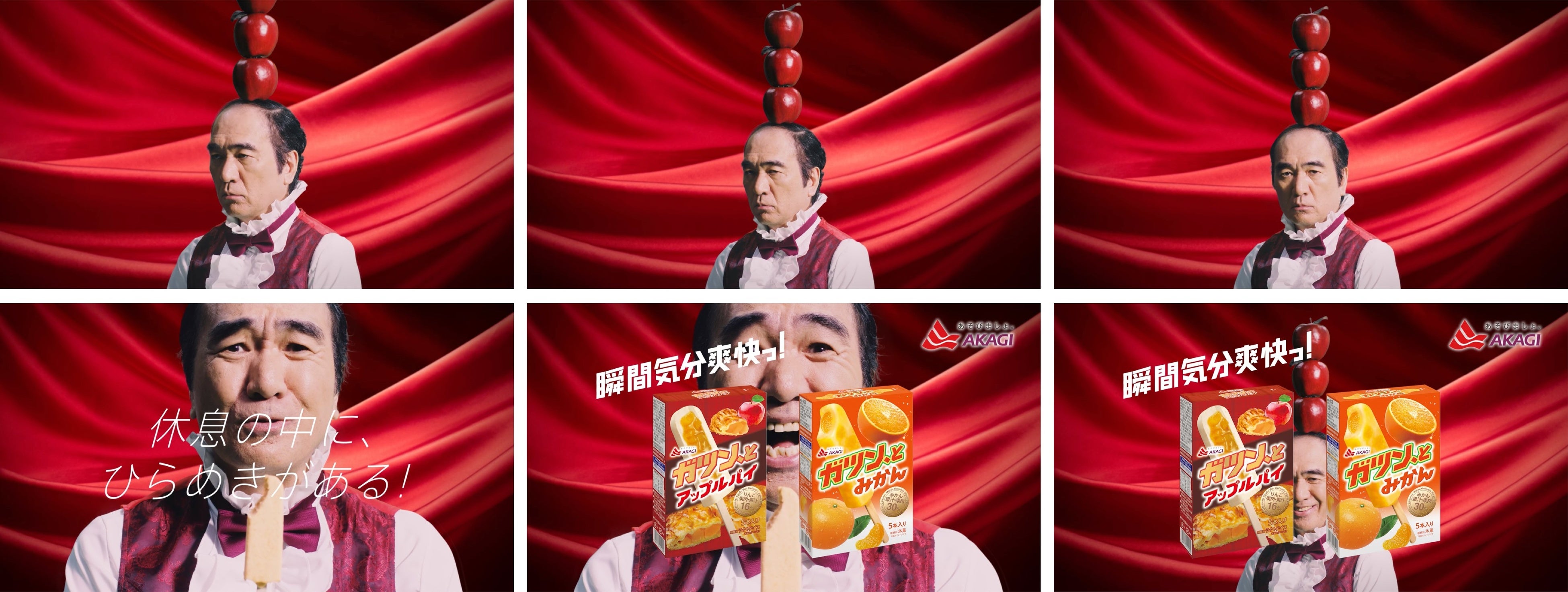 頭の上にりんごを載せた江頭2:50さんからの”あの偉人”を彷彿させるメッセージと、絵画のようにも見える映像にご注目!