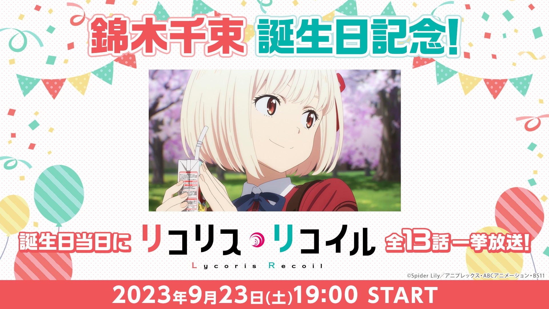 9/23(土)19:00~リコリス・リコイル 全13話一挙放送【錦木千束誕生日祭】