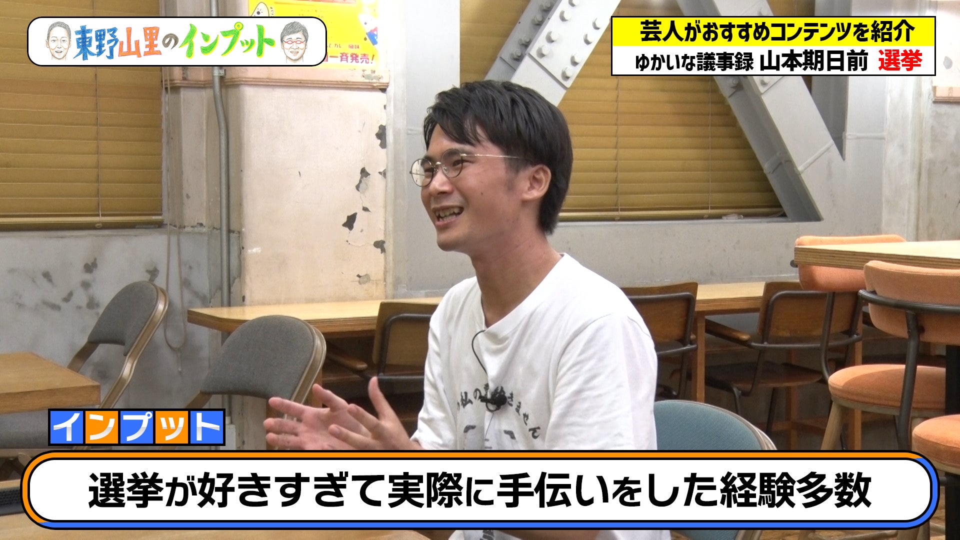その後も、史上最年少での当選となった芦屋市長選挙の話や、山本が感じる演説の上手い政治家など、東野と山里は選挙をインプットしていく……。