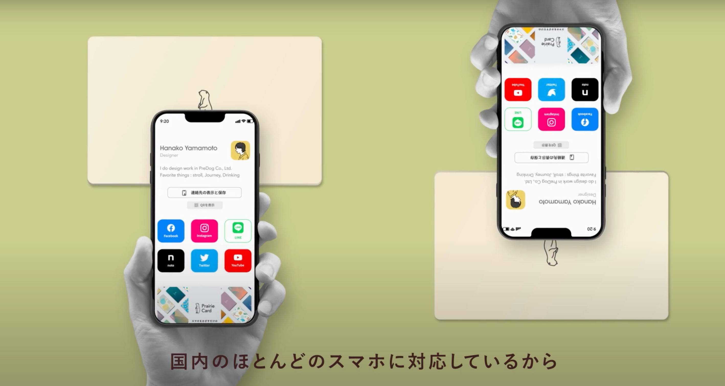 ▼スマホをかざすだけのデジタル名刺「プレーリカード」