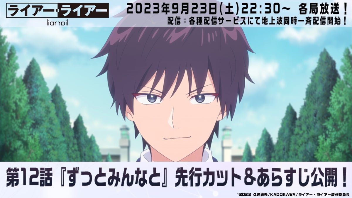 株式会社サイバーエージェント(本社:東京都渋谷区、代表取締役:藤田晋、東証プライム市場:証券コード4751)は、KADOKAWAのライトノベルレーベル「MF文庫J」より大人気刊行中の、絶対に負けられない学園頭脳ゲーム&ラブコメ原作TVアニメ『ライアー・ライアー』より、第12話先行カットとあらすじを9月19日に初公開いたしました。