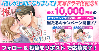 最大10,000円分が当たる!『推しが上司になりまして』実写ドラマ化記念キャンペーン