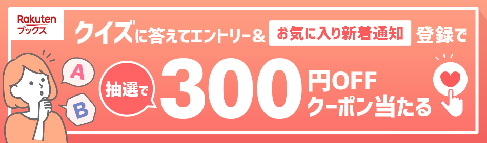 概要: クイズに参加後、エントリーのうえ、「楽天ブックス」で「お気に入り新着通知」を新しく3件追加登録すると、「楽天ブックス」で使用可能な300円OFFクーポンを30名にプレゼント