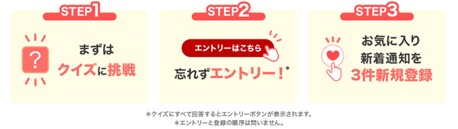 本キャンペーンは、「お気に入り新着通知」機能に関するクイズに答えて、好きなアーティストや著者の「お気に入り新着通知」を3件新規登録すると「楽天ブックス」で使える300円OFFクーポンが30名に当たるキャンペーンです。「お気に入り新着通知」機能は、「楽天ブックス」の本、DVD、CDジャンルで登録したアーティスト、著者またはシリーズの新作予約開始・販売開始情報を受け取ることができる機能です。新着商品情報は、「楽天ブックス」および「楽天市場」のページ右上にある「お知らせ」枠、または「楽天市場」アプリのプッシュ通知で受け取ることができます(注1)。「お気に入り新着通知」の登録は「楽天ブックス」での対象商品の商品ページより、「お気に入り新着通知」を「追加する」をクリックして登録することが可能です。