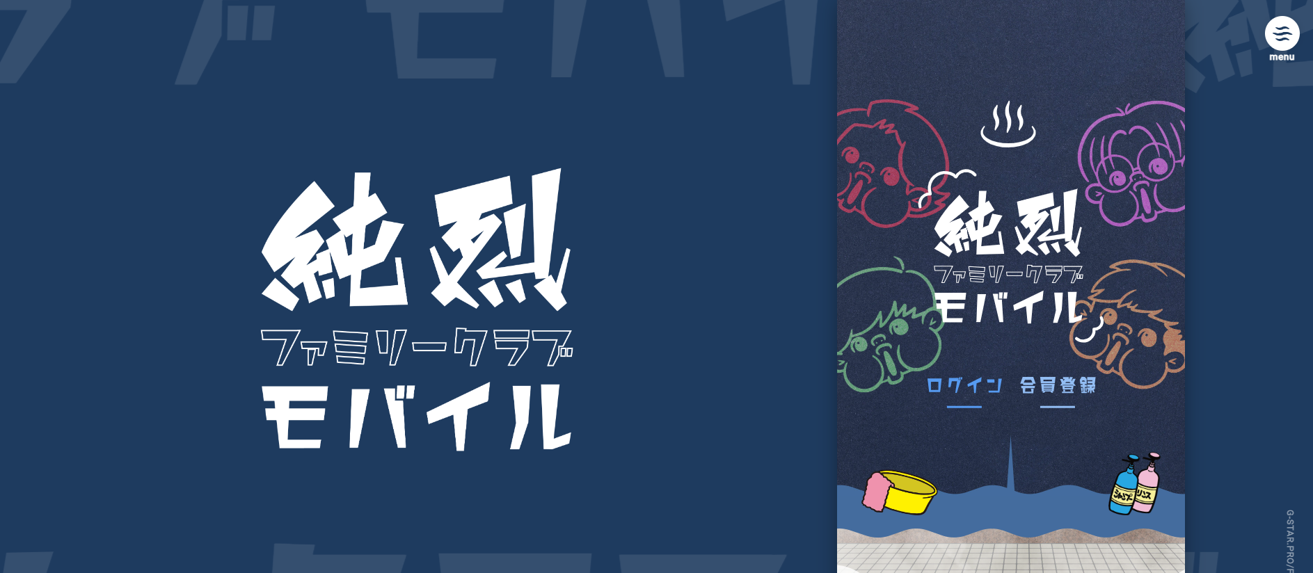純烈オフィシャルファンサイト「純烈ファミリークラブモバイル」は、デザインも一新!昔ながらの銭湯をコンセプトに、純烈メンバーの可愛らしいイラストが描かれた暖簾をくぐると、ここでしか見られない楽しい会員限定コンテンツが満載!