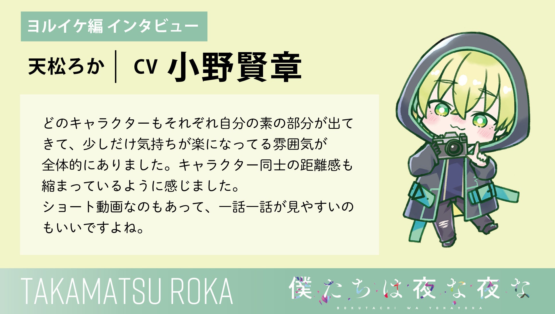 8月末に5人目のキャラクター・天松ろかのボイス付き動画&楽曲が公開され、ついに全5キャラクターが出そろった「僕よな」。