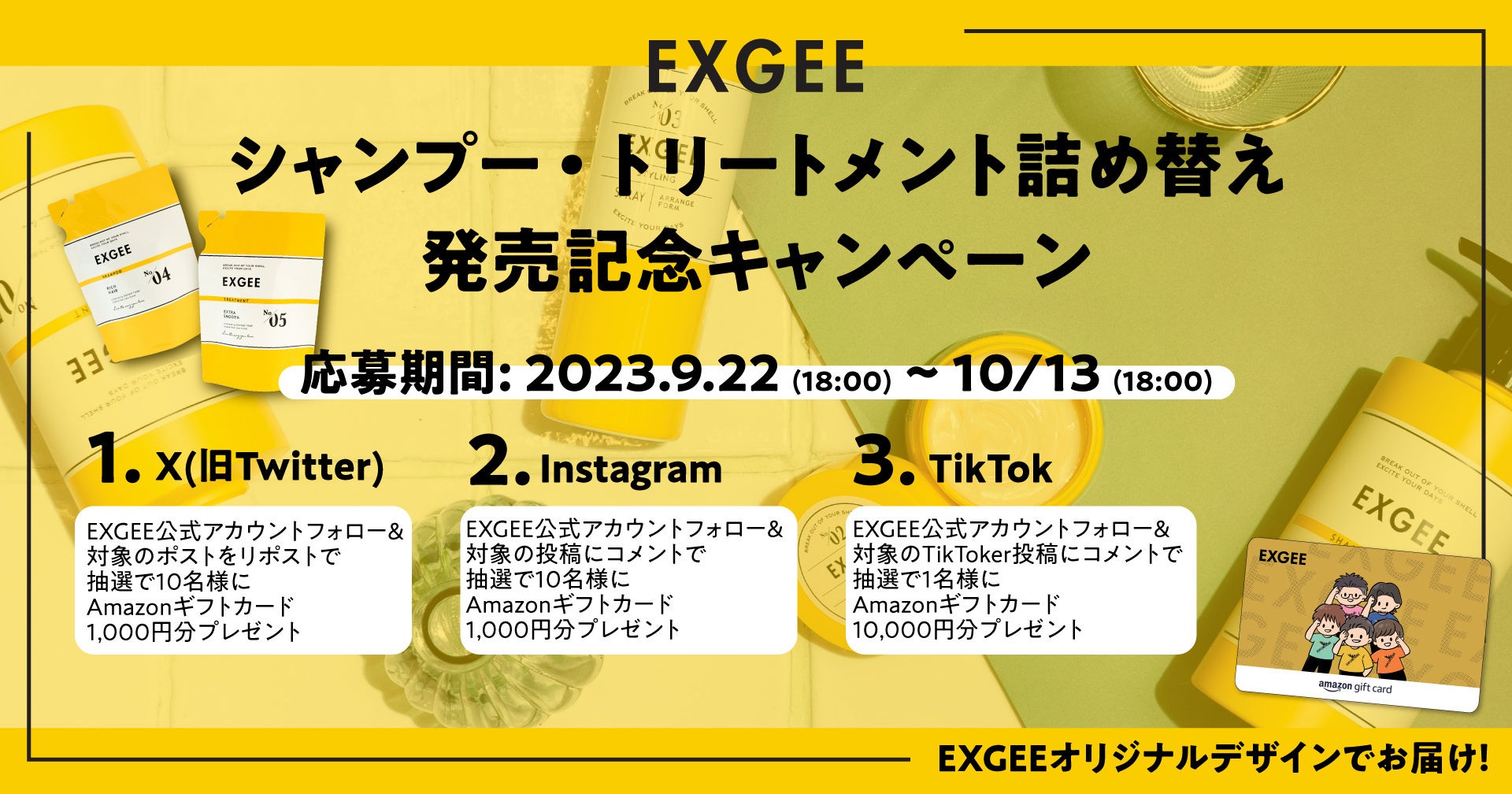 シャンプーとトリートメントの発売を記念して、EXGEE公式SNSにてキャンペーンを開催いたします。
