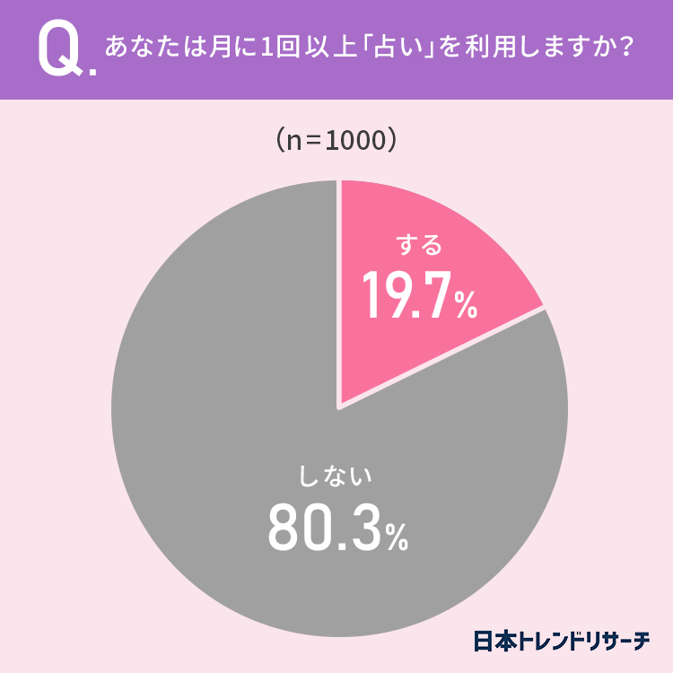 19.7%の方が、月に1回以上「占い」を利用すると回答しています。