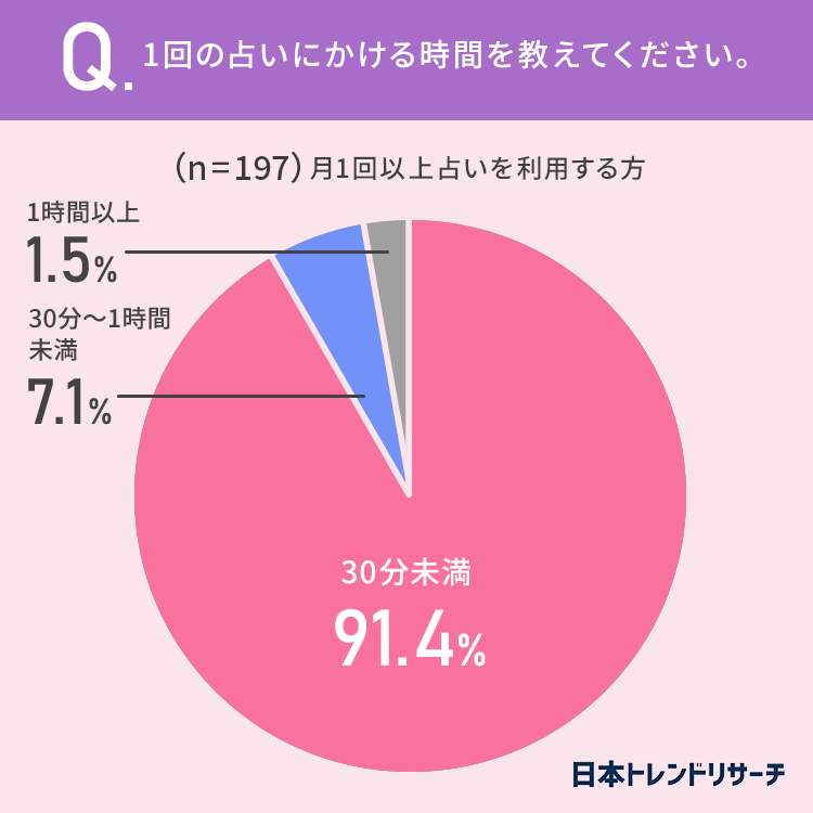 72.1%の方が「占いのクオリティに満足している」と回答しており、費用感としては「2000円未満」がもっとも多く、なかには毎日ニュースやサイトなどで無料占いを利用している方もいました。