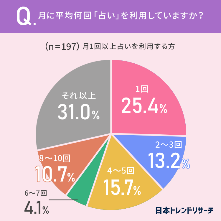 そんな「占い」ですが、月にどれくらい利用している人が多いのか気になる方もいるのではないでしょうか。