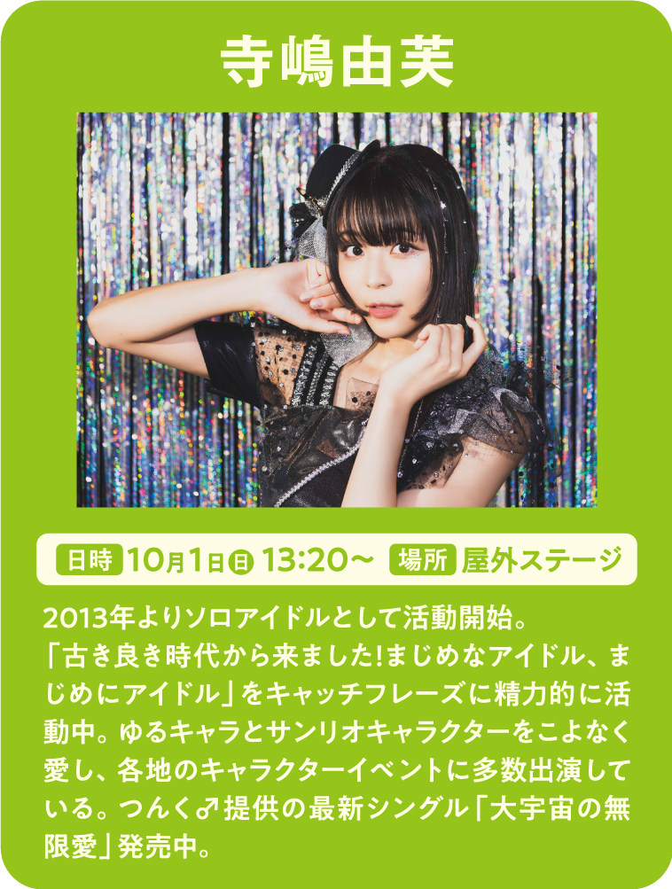 保育アーティストの【出口たかし】さん、アイドルの【寺嶋由芙】さんも登場し、