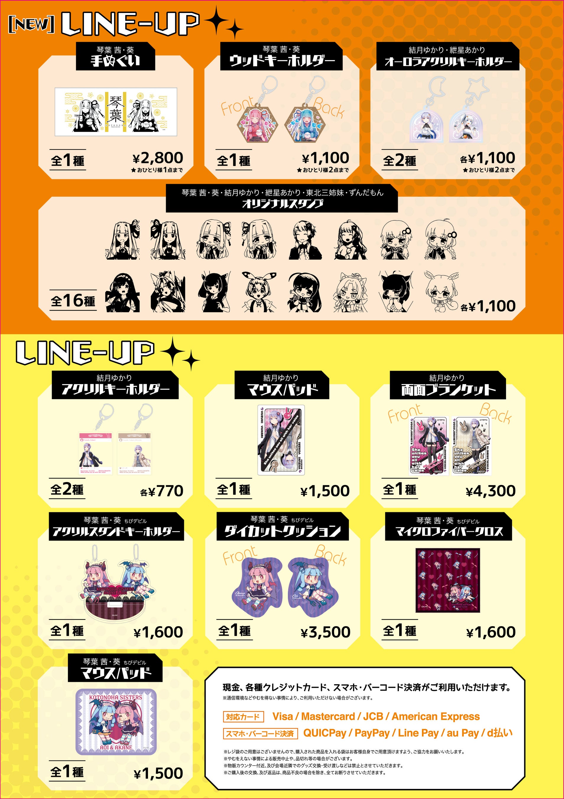 『琴葉茜・葵』は、現在CHARAZZにて販売中のグッズラインナップだけでなく、手ぬぐいやウッドキーホルダーを、『結月ゆかり・紲星あかり』はオーロラキーホルダーなどの新商品を販売致します。また「ボイスコネクト3」のためだけに作られた各キャラクターのオリジナルスタンプもご用意していますので、この機会にぜひお求めください。