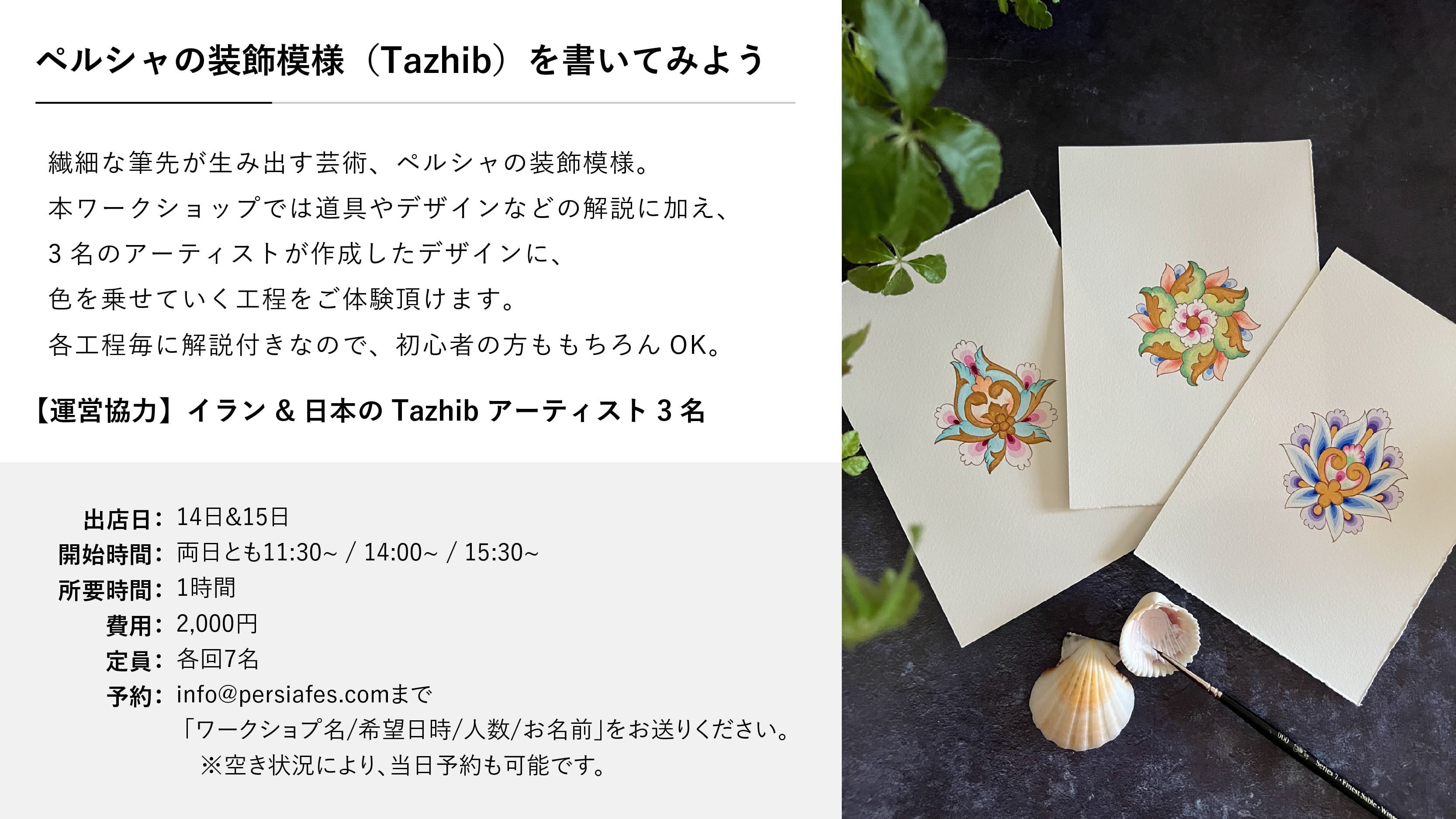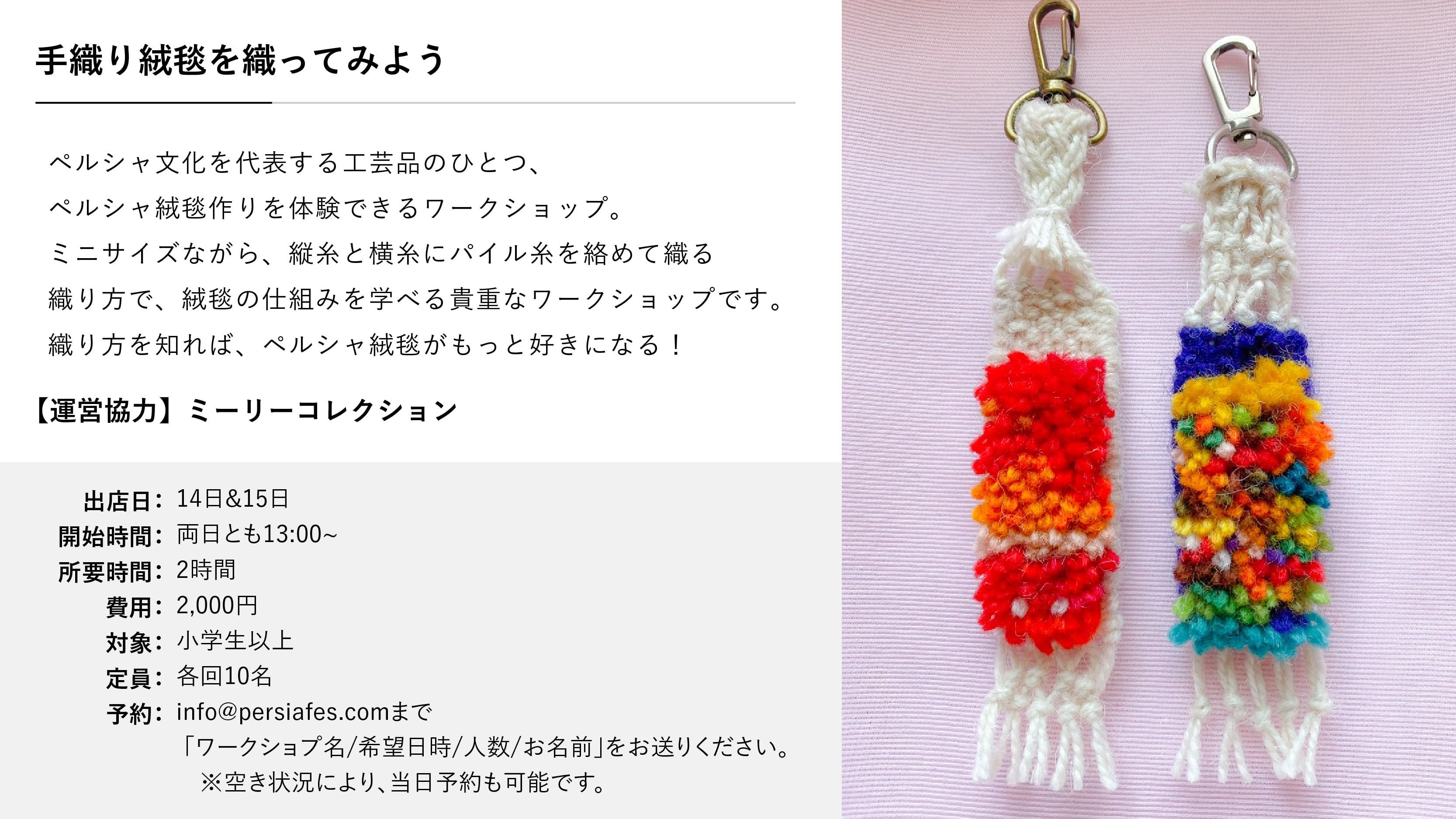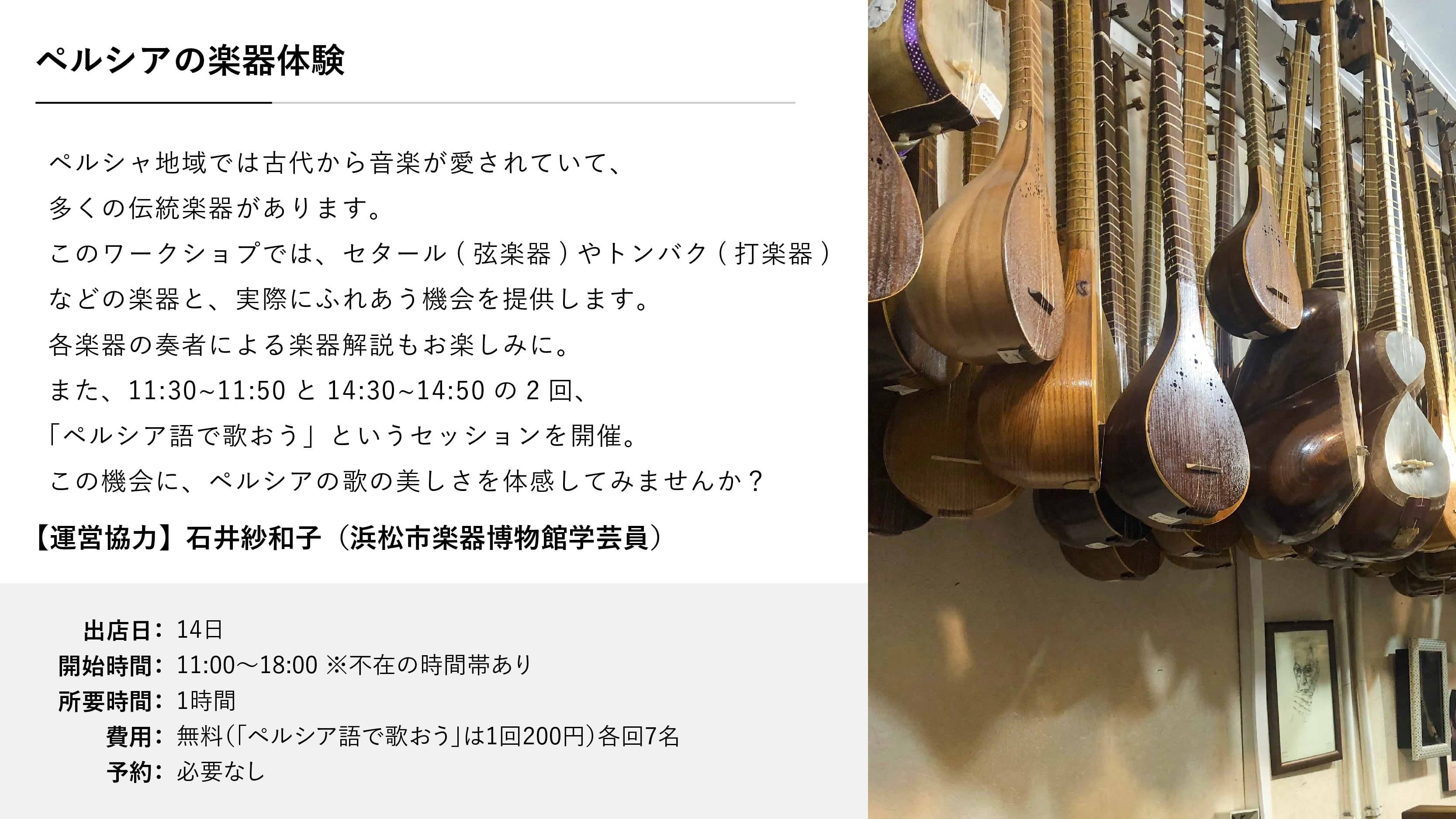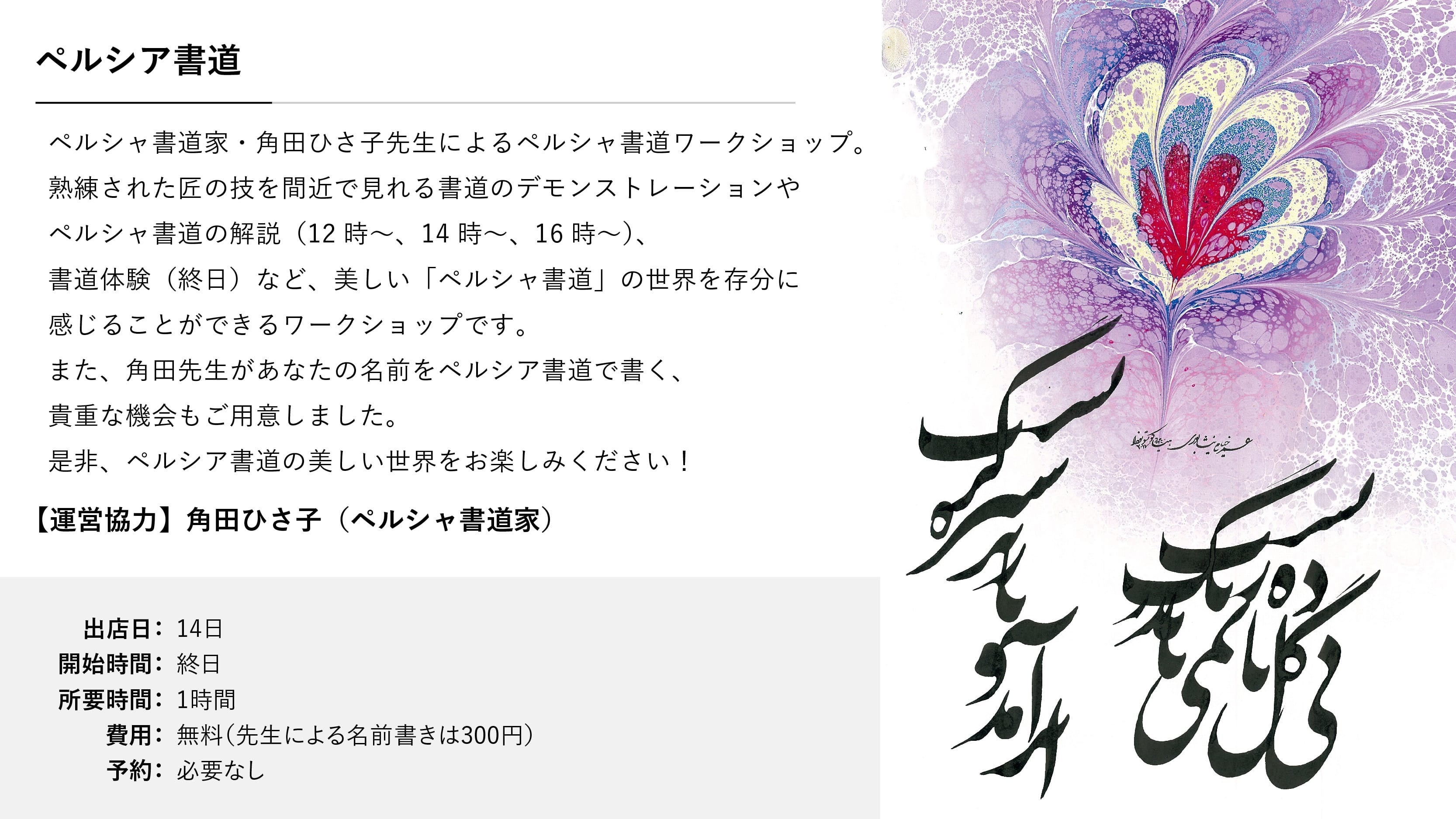 掲載されている他にも、ペルシア料理教室や缶バッジづくり、ペルシア絨毯のメンテナンス講座などの開催を予定しています。詳細は公式ページをご覧ください。