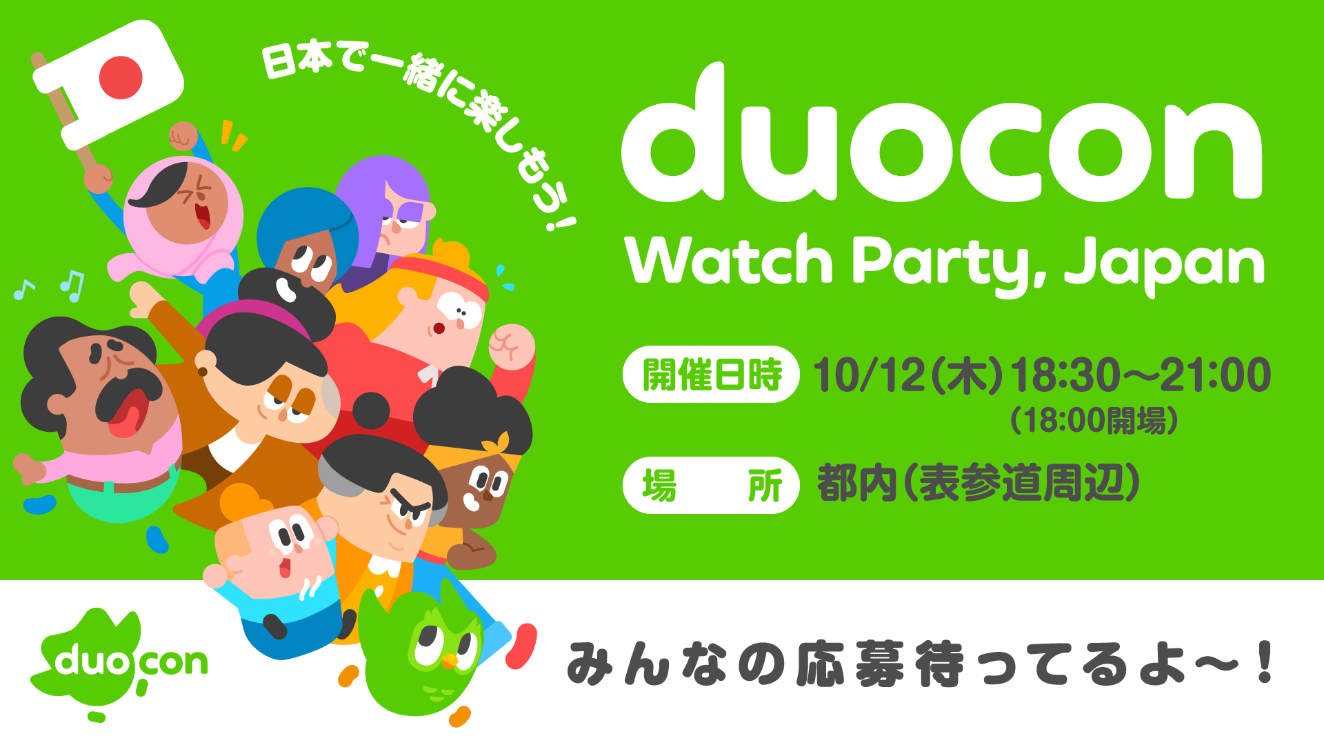 Duolingoが日本で本格上陸して3年というタイミングで、初となるDuocon Watch Party, JAPAN』を開催できることになり、とても嬉しく思います!