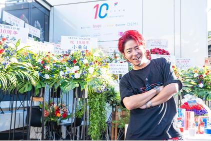 また、当日は日頃よりOCEAN TOKYOと関わりのある各業界の芸能人の方々からの祝い花が会場に展示され、OCEANN TOKYO10周年と世界初の挑戦に彩りを加えて頂きました。