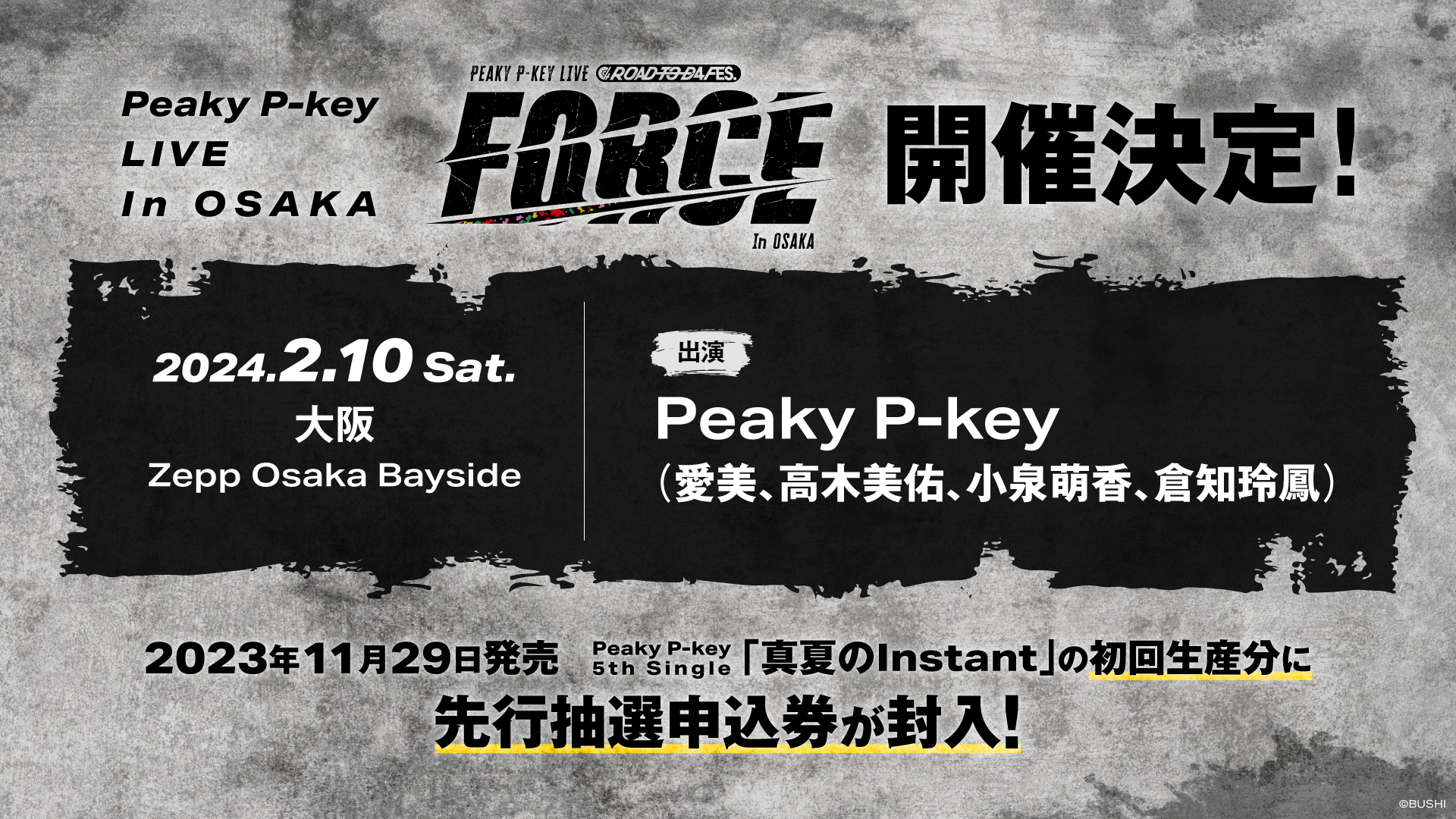 2024年2月10日(土)、Zepp Osaka BaysideでPeaky P-key LIVE FORCE in OSAKAの開催が決定しました。